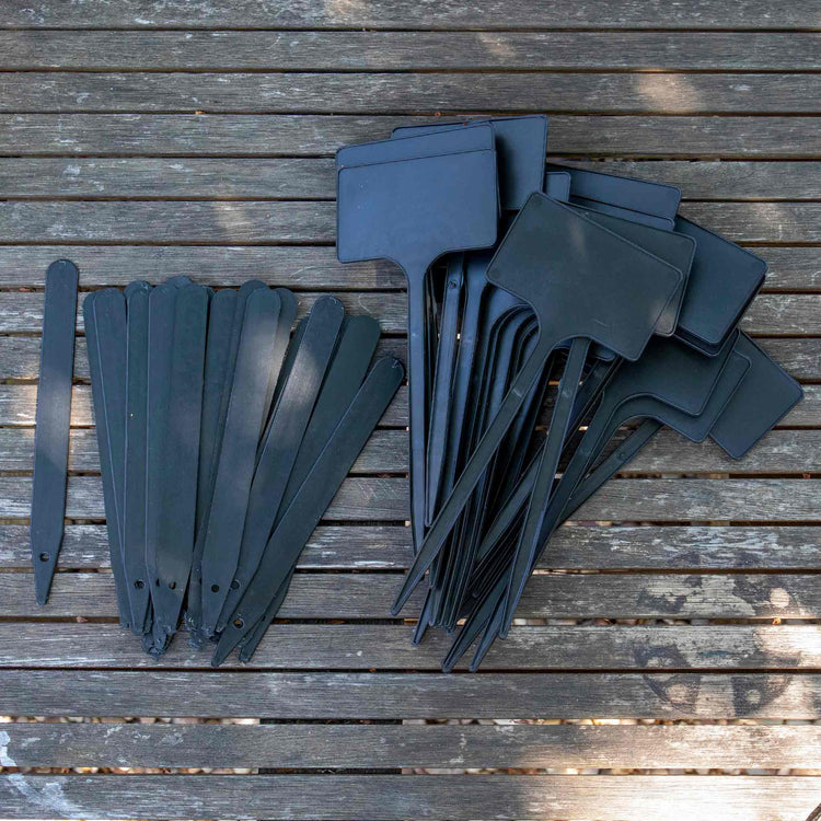 25 x T-labels: Rigid black polypropylene plant labels with a generous 3in/8cm x 2in/5cm writing surface