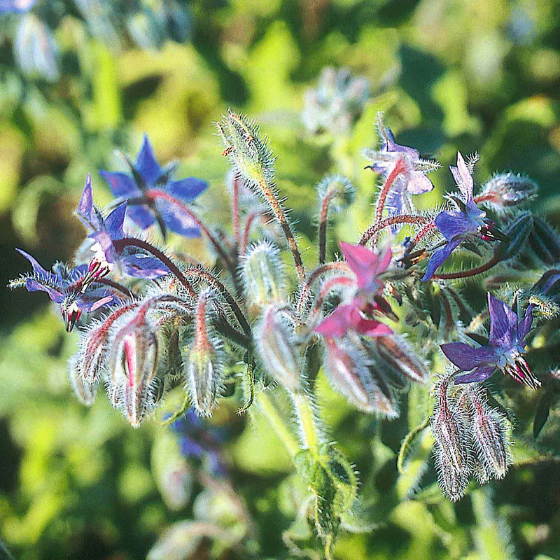 Vibrant blue flowers that are a magnet for bees and other pollinators. The edible flowers have a light cucumber flavour, delicious in salads and drinks.