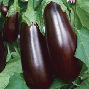 This heritage variety of aubergine has been grown in Europe since the last century, boasting excellent flavour and long-bodied fruit with very dark purple, shiny skin. Suited for growing in greenhouses or a pot on your patio.