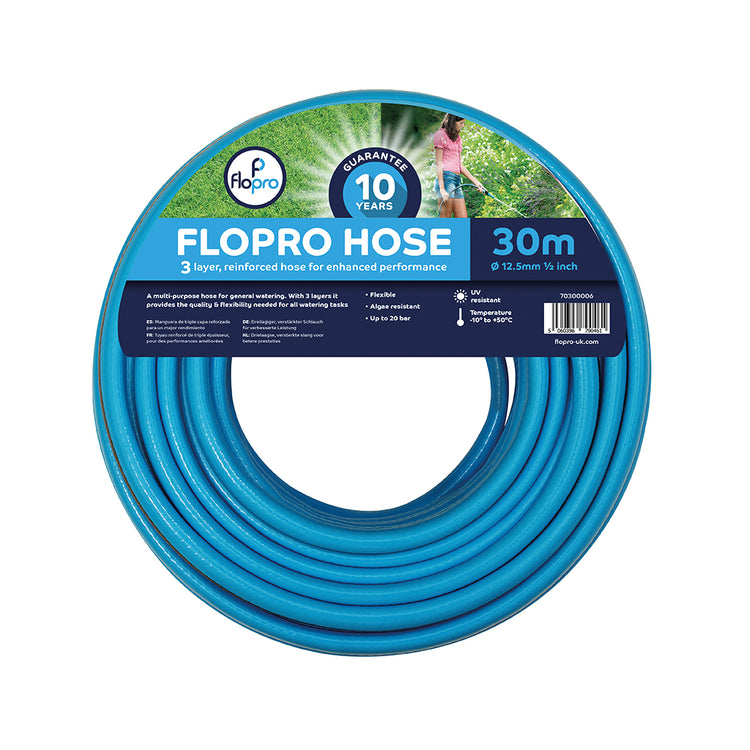 This Flopro 15m hose is the ideal watering solution. UV and algae resistant, the hose comes with a 10 year guarantee and can be used with all standard outside taps and irrigation systems. Flexible, UV and algae resistant with a 10 year guarantee.