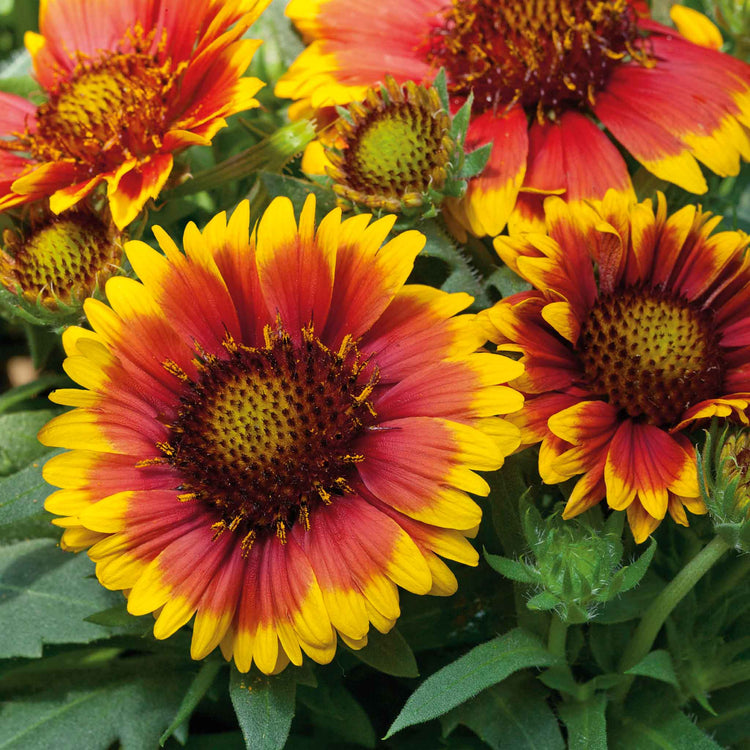 A blaze of warm colour in summer with big daisy flowers in glowing orange, red and yellow shades. Flowering from early summer well into autumn, these bushy, easy-care perennials are perfect for pots and sunny borders.