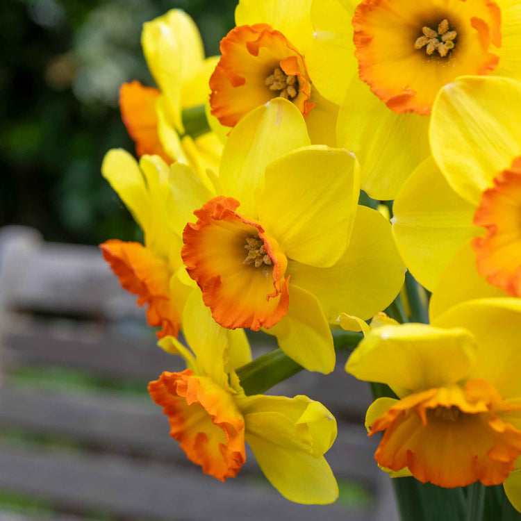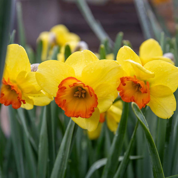 Narcissus ‘Bantam’ might be small, but it makes a big impact in the garden with its clear yellow petals and bright orange-rimmed cups. Appearing in mid to late spring, the flowers last well in all weather and look fabulous in beds and pots. A deserving holder of the RHS Award of Garden Merit, Narcissus ‘Bantam’ is a vibrant splash of colour in spring.