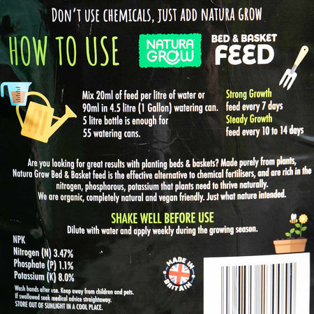 Made from only plants and nature, Natura Grow Bed & Basket Feed will give healthy growth without the need of chemicals. Entirely plant based from sustainable crops grown in the UK to produce Green energy.