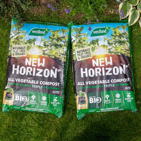 Give home-grown fruit and vegetable plants triple the goodness with this peat-free formulation. New Horizon is a suitable blend of loam, coir and added ingredients to make up a compost with great moisture-holding and aerating properties.