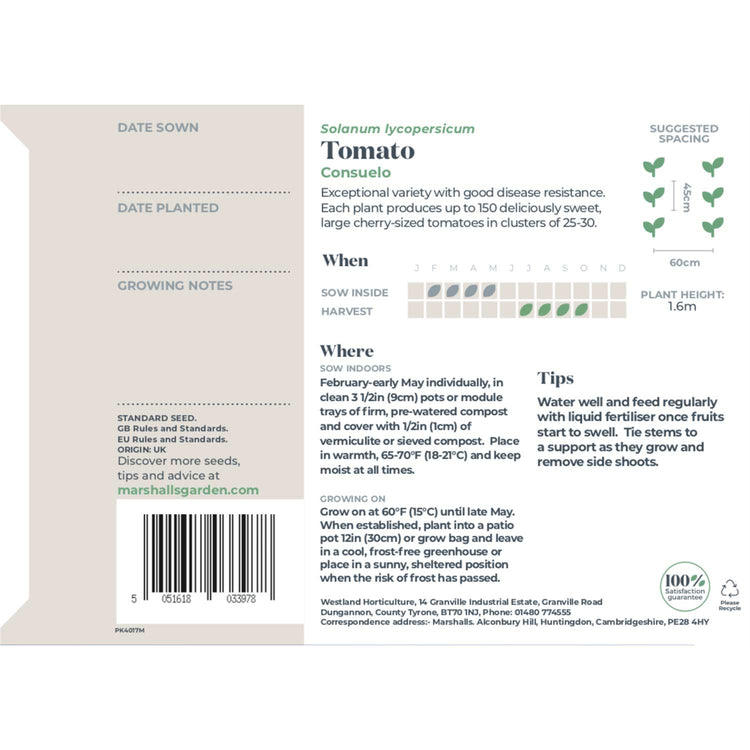 Planting Out Transplant into larger pots, growbags, or directly into the soil once all risk of frost has passed. Provide canes or strings for cordon varieties and keep plants in a warm, sheltered spot for the best yields.