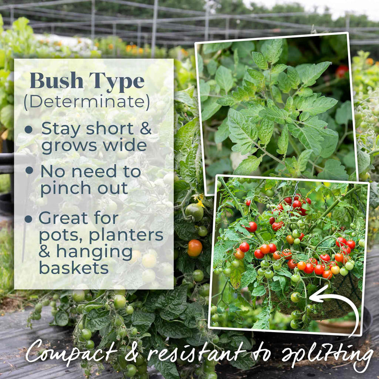 Even better than the ever-popular ‘Tumbler’, British-bred Tomato ‘Terenzo’ Bush cascades from pots and hanging baskets, producing masses of bright red cherry tomatoes with superb flavour all summer. This compact, bushy tomato is ideal for small gardens and patios. The fruits have good resistance to splitting and disease.