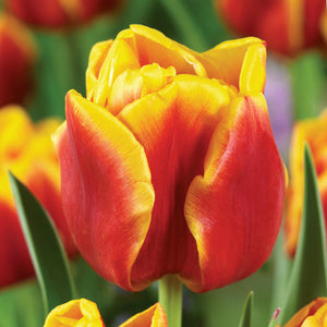 Tulip ‘Suncatcher’ brings all the warmth of summer sunshine to the garden in spring, with vibrant golden-yellow flowers tipped with bright red. These cup-shaped blooms on sturdy stems are ideal for borders and containers, and make excellent cut flowers.
